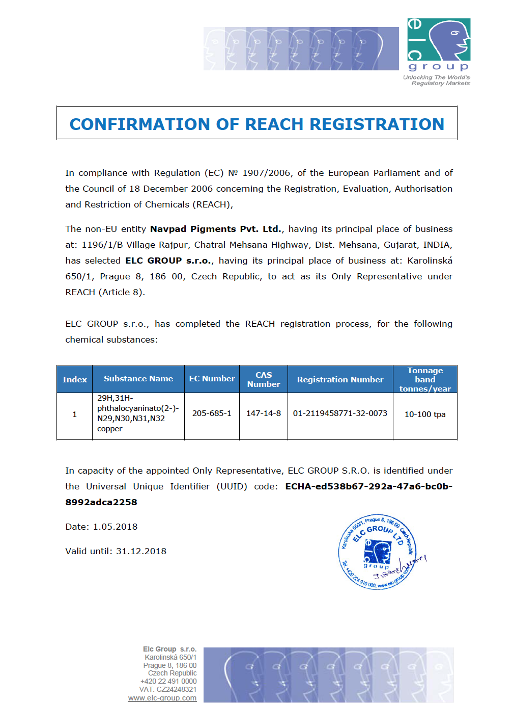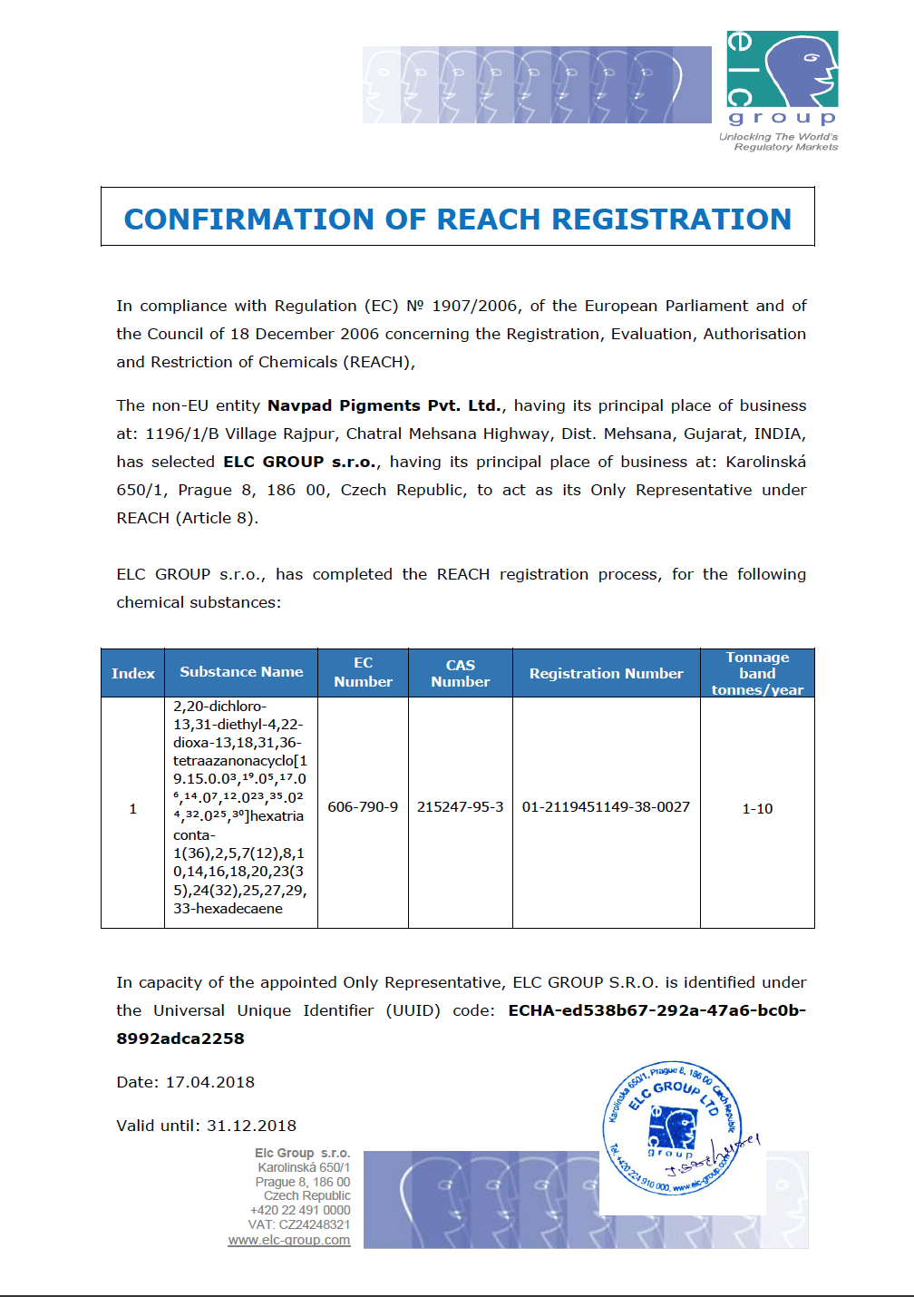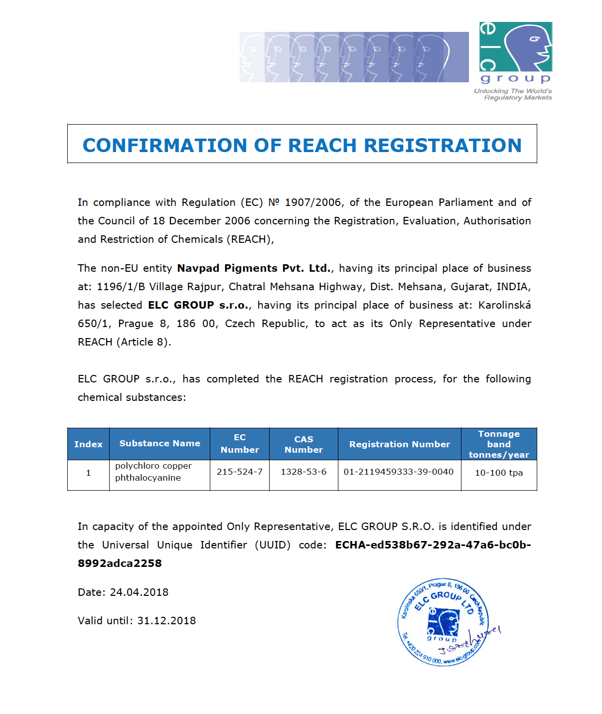 We are happy to announce that we have completed the final REACH registration process for our products.